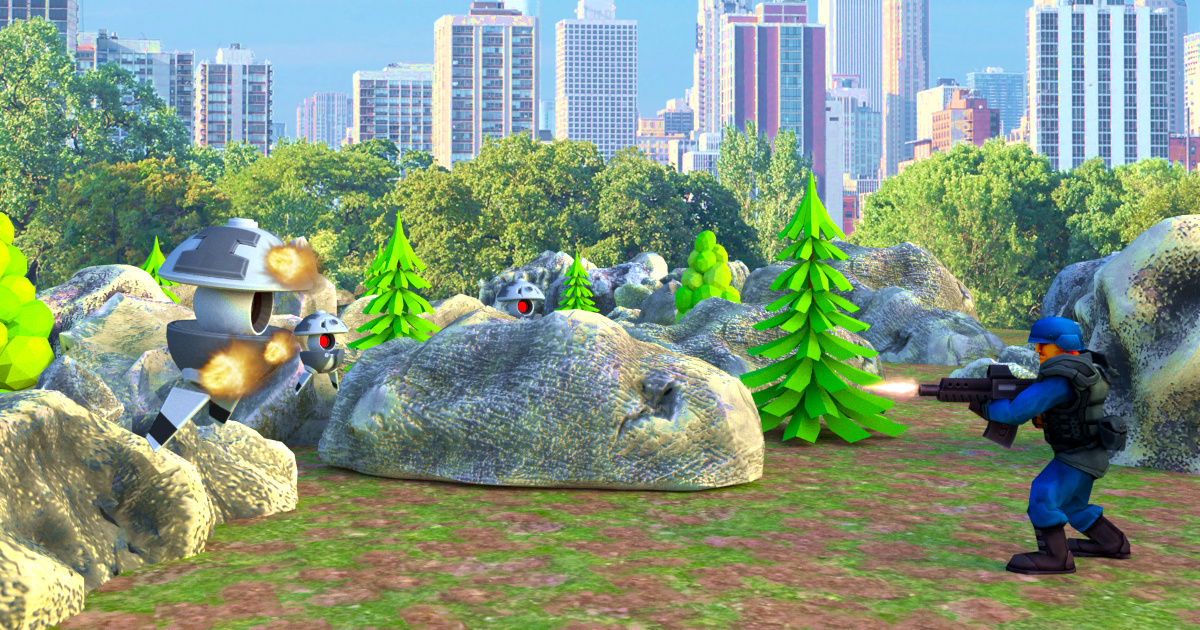 Defend the planet from machines. The game offers three levels of difficulty, each comprising ten stages. You have the option to acquire health kits and weapons. In the settings, you can toggle overall sounds and fine-tune mouse sensitivity.