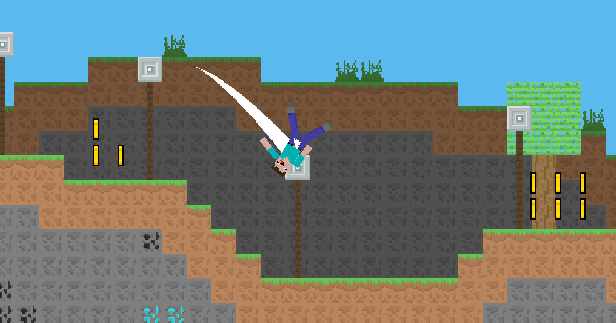 Ahora tienes la capacidad de trasladarte de un lugar a otro lanzando una red. Ten cuidado, no te precipites al suelo o fallecerás; el paisaje arriesgado puede acabar contigo en cualquier momento. Lanza y salta. Sé cauteloso, hay aspas giratorias afiladas y astillas de madera puntiagudas por doquier, debes evitar tocarlas. Reúne el oro en el trayecto y acumula la mayor cantidad posible de oro.